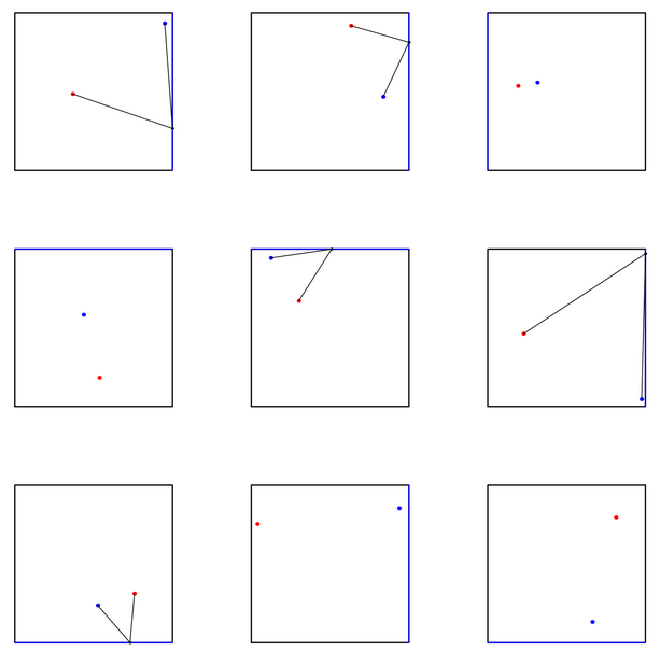 Let’s plot some examples, highlighting the part of the relevant side which is closest to red or blue: